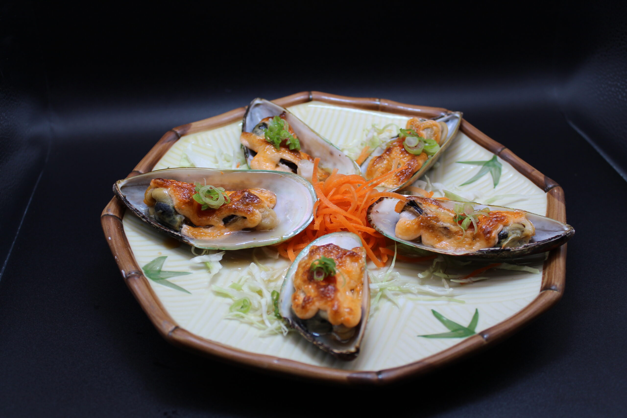 Wrapped in cucumber, filled with salmon, spicy tuna, crab, avocado and green onion with screaming orgasm sauce
